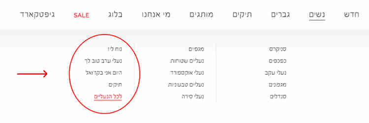 ראשית, אנחנו מציגים סוגים של נעליים לפי קטגוריות החיפוש הקלאסיות. במקביל, הוספנו מרכיב שנקרא ״סגנון״, שבו אנחנו נותנים יותר ביטוי לשפה ולייחודיות שלנו, וגם מאפשרים למשתמשים לעשות חיפוש קצת שונה.